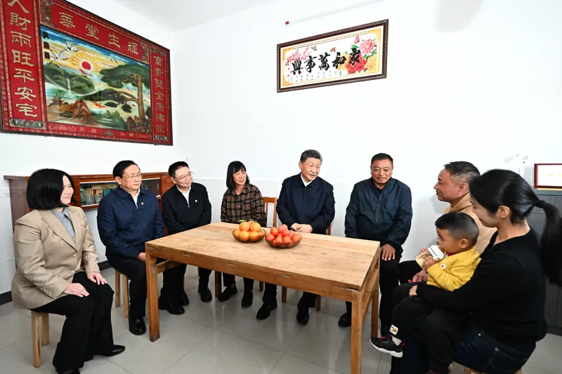 在村民熊成龙家,习近平仔细察看家居生活,同一家人围坐在一起,了解生产、孩子就业创业、家庭收入、养老医疗等情况。听说这些年城乡基本公共服务体系不断健全,农民物质文化生活越来越有保障,习近平很高兴。他希望一家人继续努力,把生产、生活搞得更好,把孩子培养好,让好日子越过越红火。